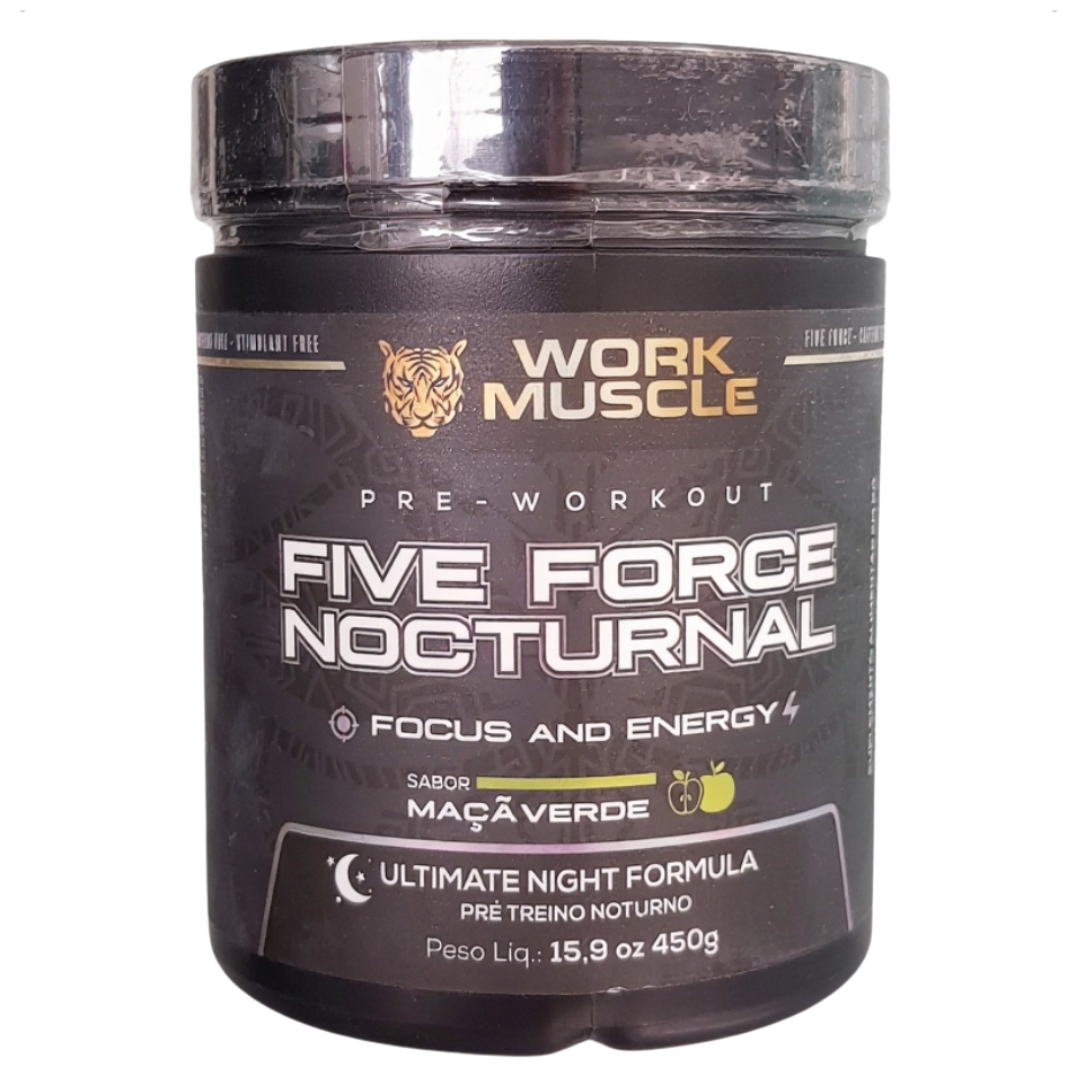 O Five Force Nocturnal da Workmuscle Labs (Brazil/USA) foi desenvolvido especialmente para quem treina à noite e busca desempenho máximo sem o uso de estimulantes que atrapalham o sono. Combinando ingredientes premium e fórmula exclusiva, proporciona energia limpa, foco e força muscular de forma segura e eficaz.